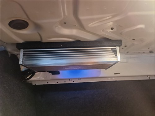 之后,技師采用尾箱頂部吊裝的安裝方式,為汽車(chē)添加了一臺(tái)詩(shī)芬尼BO10 DSP功放,8路大功率輸出動(dòng)力源源不斷,并且具有優(yōu)化音源,和調(diào)音功能,可以輸出高品質(zhì)的音頻信號(hào),并營(yíng)造出立體環(huán)繞的聽(tīng)覺(jué)體驗(yàn)。