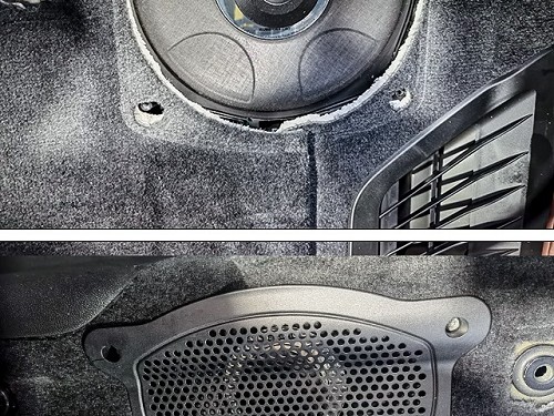 然后改裝師將勁浪 I SUB BMW4超低音安裝在座椅底部的原位并添加保護罩,充足的用料和扎實的做工,DJ,大動態音樂,低音演繹游刃有余,特別是音樂細節,豐富而耐聽。
