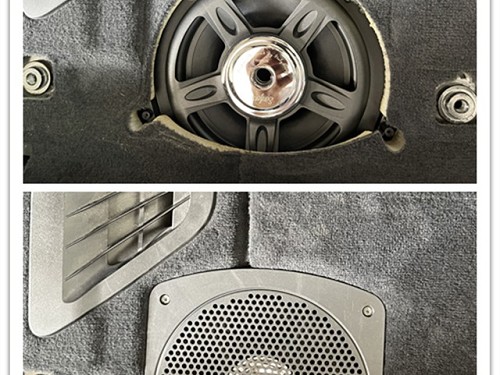 后聲場采用一套詩芬尼nature4.0喇叭,聲音優美動聽,高音表現堪稱完美,中音醇厚,能夠起到很好的提升音效的作用。同時可以原車無損安裝在后擋板位置,符合車主的無損改裝要求。
