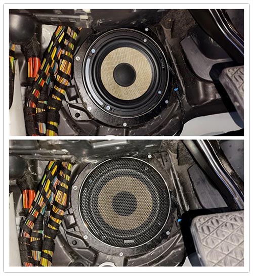 勁浪亞麻中低音喇叭原位安裝在前腳踏板前方及復原細節(jié)
