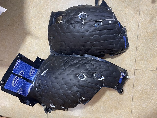 拆下來的葉子板也叫做內襯板,我們需要對其進行清理再粘貼大能隔音材料,可以從源頭上減少胎噪的產生,最后將它安裝固定回原位。