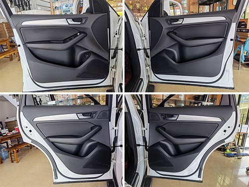 今天來到泉州海林的這臺奧迪Q5,原車采用劣質的止震材料,導致車內異味十分嚴重,車主想了很多辦法,都沒辦法去除,如今來店才得知異味的來源。不止是異味問題,車主對原車音響也早已不滿意,既然要改,何不改得徹底,確定方案后,立刻對其進行改裝。