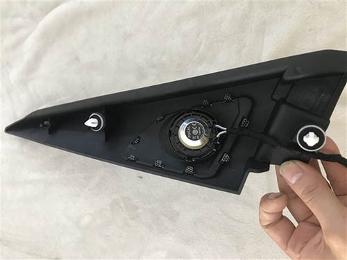 前聲場選擇法國寶馬專車專用三分頻,根據寶馬原車喇叭尺寸和外型開設專模定制而成,能夠百分百的與原車喇叭無損換裝。因為高音具有聲場定位的功能,所以高音單元安裝在三角位這樣有利于聲場的定位。