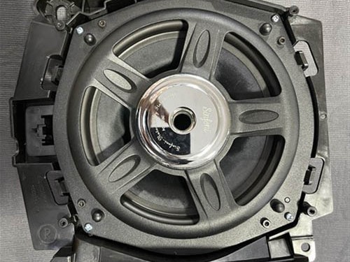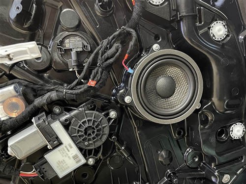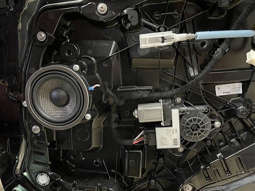 接下來,想必車友們關心的新款寶馬325Li原車音響到底是啥樣子。一同從圖片中探下究竟。寶馬325Li原車前門只有一對中音喇叭,后門也是一對中音,兩只低音位于前排座椅底下(寶馬各車系的標配),后尾箱左側有一只巴掌大的功放。因此,僅從搭配上看,原車音響是不完整的,很明顯是缺少高音,沒能將音樂的高頻部分表現(xiàn)出來,二是小功放,也難以有足夠的功率推動喇叭發(fā)音,另外,在拆出的喇叭也直觀地看出,其用料差,做工粗糙,是難以滿足對音樂有要求的車主。