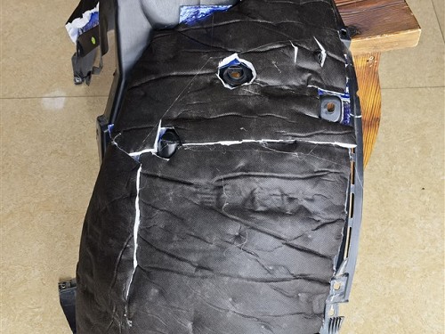 標致5008原車引擎蓋沒有做隔音措施,容易受到發動機噪音和發動機熱量的影響。對此,海林改裝技師采用藍金剛減震材料對引擎蓋做減震隔音處理,再用銀衛士做吸音隔熱處理,有效阻隔發動機熱量及噪音問題。