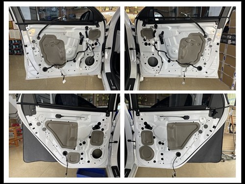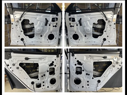 前后門板使用安德納做第二層隔音處理,密封多余的孔洞,將門板打造成一個扎實的箱體,為后續原位安裝的喇叭提供一個良好的發聲環境。
