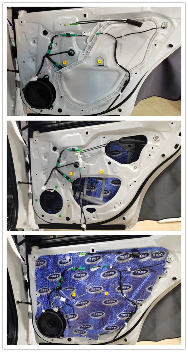 前后門板飾蓋使用超級溫莎進(jìn)行隔音填充,不留縫隙