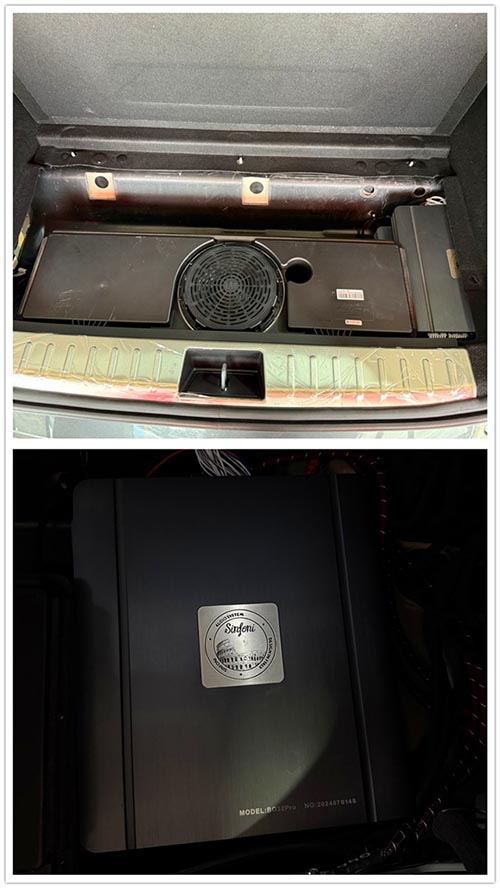 這次升級(jí)方案選擇了專車專用的線束,確保與原車音響系統(tǒng)無(wú)縫對(duì)接,減少改裝過(guò)程中的繁瑣接線工作和電路問(wèn)題。同時(shí),我們加裝了一臺(tái)詩(shī)芬尼BO32pro 16路DSP功放及一臺(tái)詩(shī)芬尼BO810 8路功放。這兩臺(tái)功放不僅可以強(qiáng)力驅(qū)動(dòng)原車的揚(yáng)聲器,還能通過(guò)DSP的強(qiáng)大處理能力對(duì)音效進(jìn)行精確調(diào)校,提升音質(zhì)的層次感和細(xì)節(jié)表現(xiàn)。