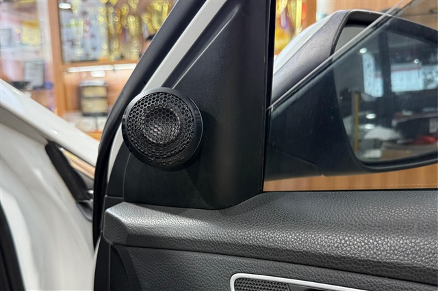 高音單元巧妙地安裝在門板三角位,既保證了最佳聲場(chǎng)定位,又保持了原車內(nèi)飾的整潔美觀。