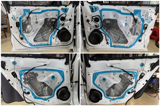 原車門板僅有一層塑料薄膜,隔音效果有限。技師拆除原薄膜后,使用GT隔音材料對四門進行了雙層隔音處理,有效抑制振動并提升車門密封性,為喇叭提供更好的工作環(huán)境。