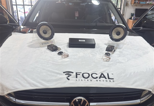 泉州汽車音響改裝/大眾邁騰音響改裝勁浪亞麻盆兩分頻+弗萊德FD-4 v2功放/泉州海林音響改裝