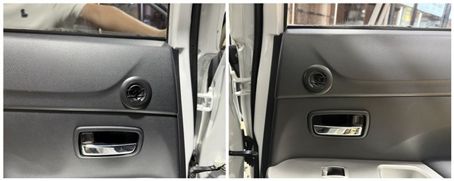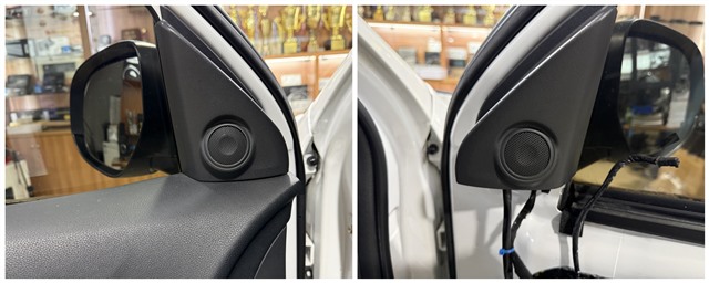 車門三角區經過精準倒模,嵌入勁浪ASE-165高音喇叭。此舉不僅提升聲場高度,使音像定位更精準,還與原車內飾無縫融合,保留美觀性。