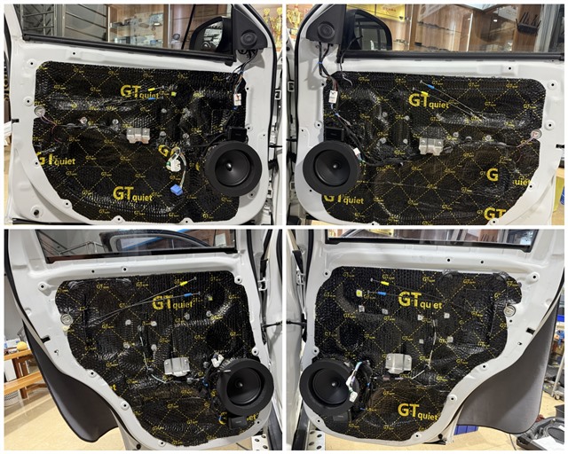 四門采用GT隔音材料進行雙層處理,有效阻隔行駛中的風噪與共振。密閉的門板如同音箱箱體,讓中低頻更扎實,還原音樂本色。然后把另外一對勁浪ASE-165高音喇叭安裝在車門內飾板上,與同安裝在車門上的中低音喇叭距離較近,有利于中高頻聲音的銜接,使聲音過渡更加自然流暢,有助于營造出和諧統一的車內聲場。