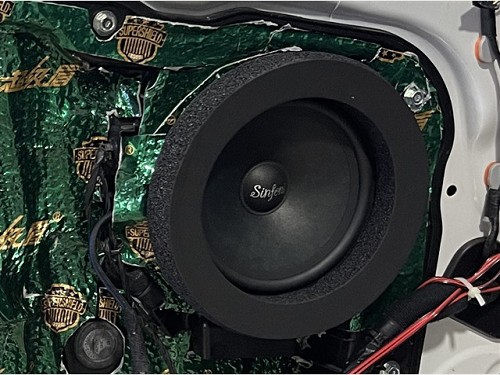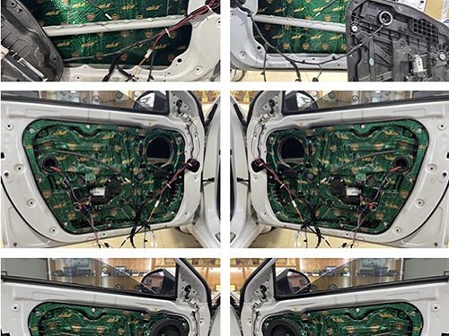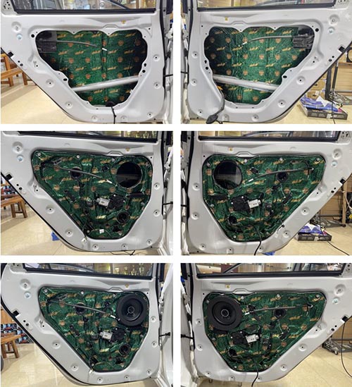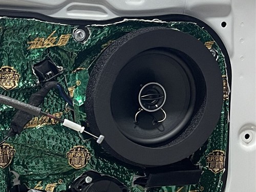 在行車途中,車內外環境的繁復變化無疑是純凈音效的巨大挑戰!而且原車門板隔音措施欠缺,風噪很容易通過門板傳入進來,所以我們的改裝師使用大能超級盾及吸音棉對門板做了三層隔音處理,這就可以防止車門共振,加固車門結構,讓門板形成了一個密封箱體,從而有效的減少了風噪的傳入,為喇叭營造一個出色的環境。