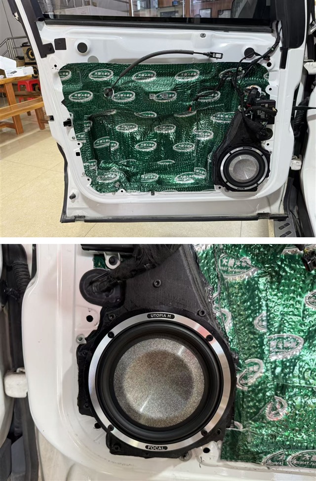 針對(duì)前聲場中低音單元的安裝,制作木制墊圈固定喇叭,避免行駛過程中因震動(dòng)導(dǎo)致喇叭位移,保障音質(zhì)穩(wěn)定性;另一方面,墊圈將中低音單元適度 “突出” 安裝,使其正面發(fā)音不受門板內(nèi)飾板的阻擋,發(fā)音直接而無損失。