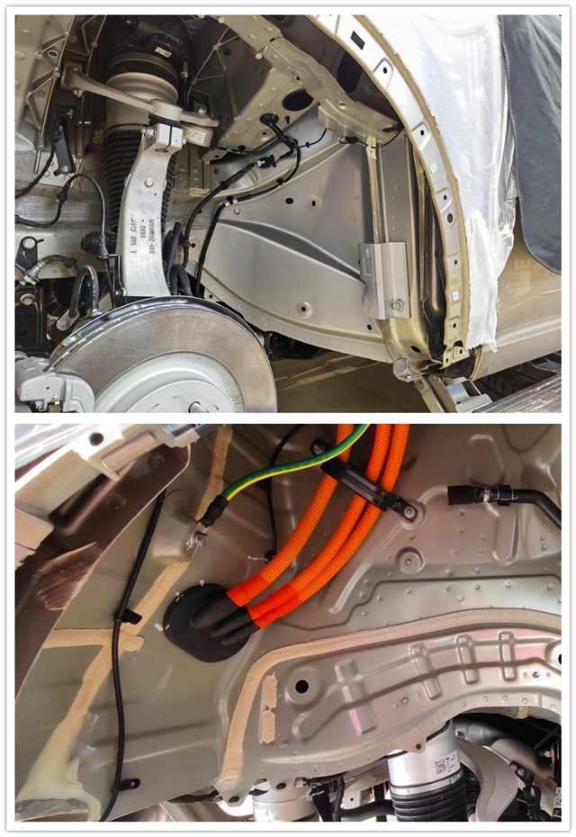 改裝師首先對噪聲來源進行了詳細檢查。通過這種有針對性的檢查,可以準確找到噪聲的主要來源,避免盲目施工,既節省成本又能達到最佳效果。四輪是胎噪、路噪最常傳入的地方。行駛時,避震器所傳導的異音,以及輪胎與路面及碎石與鈑金之間的撞擊雜音,都是噪聲的主要來源。