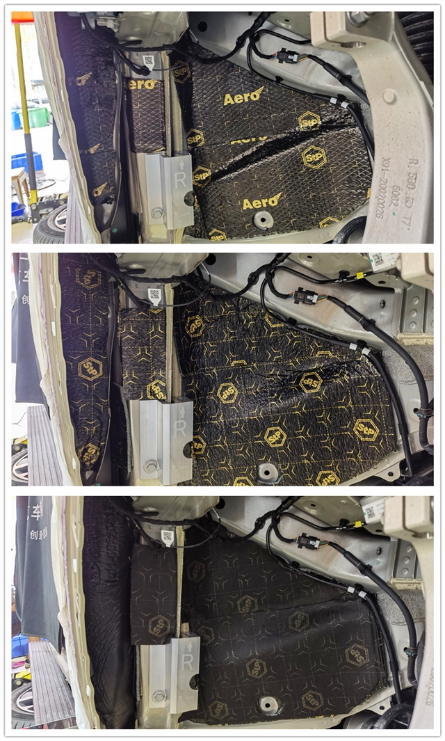 隔音材料不僅用于輪弧的覆蓋,更貼心地在拆下的內襯板上也均勻粘貼了一層。正是這道吸音屏障,最終讓車內恢復了一片寧靜,哪怕是高速行駛時也能享受到無與倫比的靜音效果。