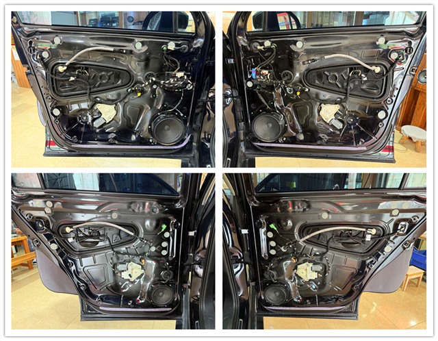 原車前后門板并沒有做好隔音措施,改裝師先將門板鈑金表面進行清潔,即將進行隔音施工