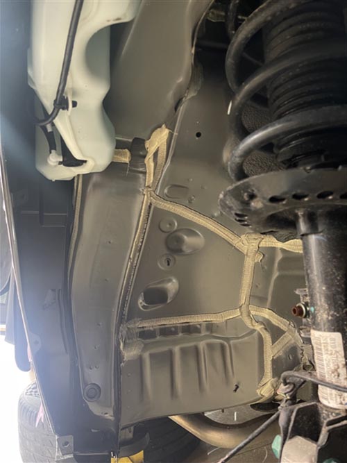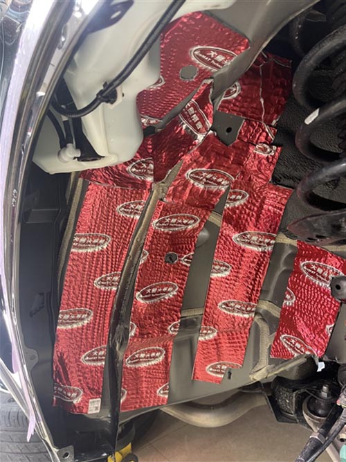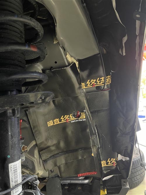 使用噪音終結者對輪弧做第二層隔音處理,能夠隔絕噪音的傳遞,將聲音的振動轉化為熱能散發,對噪音的隔絕非常有效