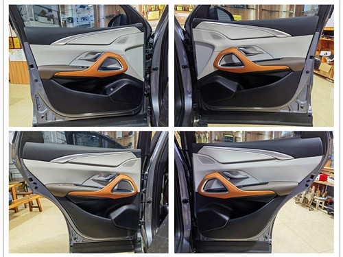 在音響升級前,首先對四門進行專業(yè)的隔音處理。改裝師使用大能超級盾隔音材料和吸音棉對門板鈑金及門板飾蓋進行了全面的隔音吸音處理。有效減少行駛噪音的傳入,還能為揚聲器提供更為安靜的工作環(huán)境,從而提升音響的整體表現(xiàn)。接下來,為前后聲場安裝了詩芬尼S65兩分頻。中低音單元原位無損安裝在門板上,并且加裝了美音圈,進一步提升了聲音的聚焦感和層次感。