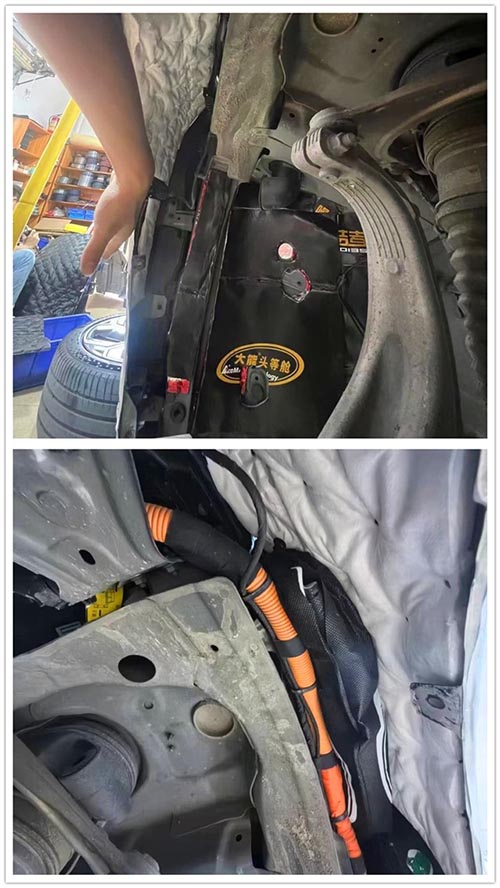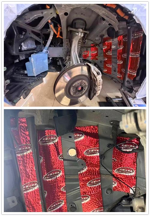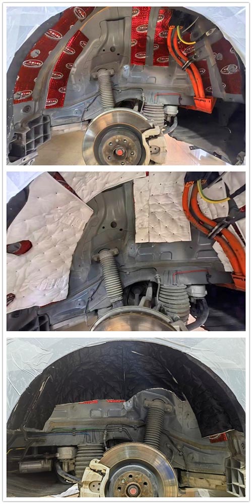 本次隔音升級的重點在于四輪,因為這是胎噪和路噪的主要來源。泉州海林專業(yè)改裝師根據(jù)極氪001的特點,制定了細致的四輪隔音方案,選用大能紅派、噪音終結者和超級溫莎棉等優(yōu)質隔音材料,分層次進行處理,達到理想的隔音效果。