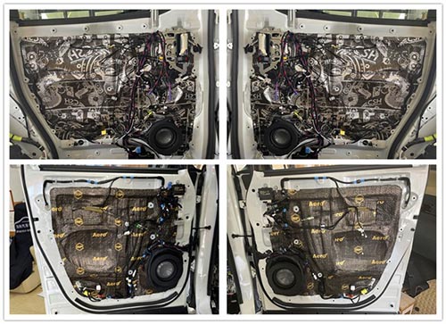 首先針對原車門板隔音措施不足的問題,前門板使用俄羅斯stpCSH銀衛盾進行雙層隔音,后門板使用俄羅斯stp航空炸彈進行了雙層隔音處理,有效的抑制了門板的噪音,為喇叭提供了良好的工作環境。