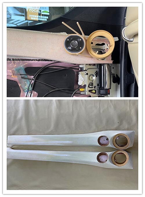 倒模還涉及到設計,改裝師先確定好門板安裝的位置及安裝喇叭的大小,追求更高質量的門板倒模效果