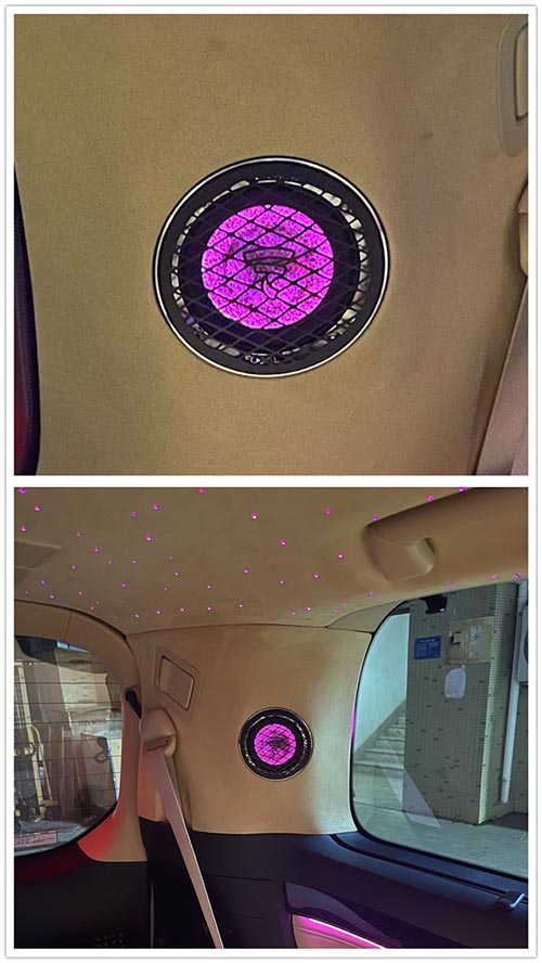 倒模安裝后的高音喇叭,加上氛圍燈整體比較美觀大氣