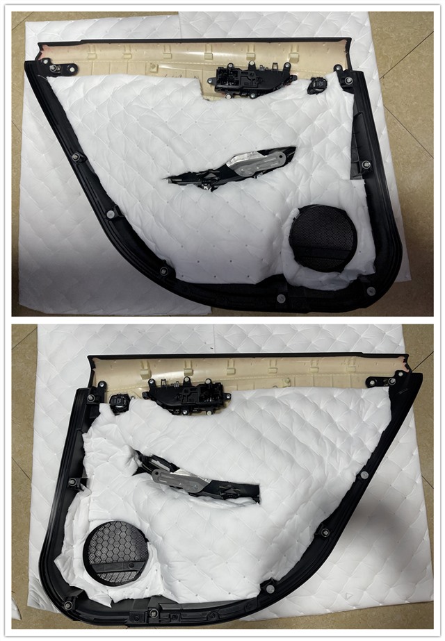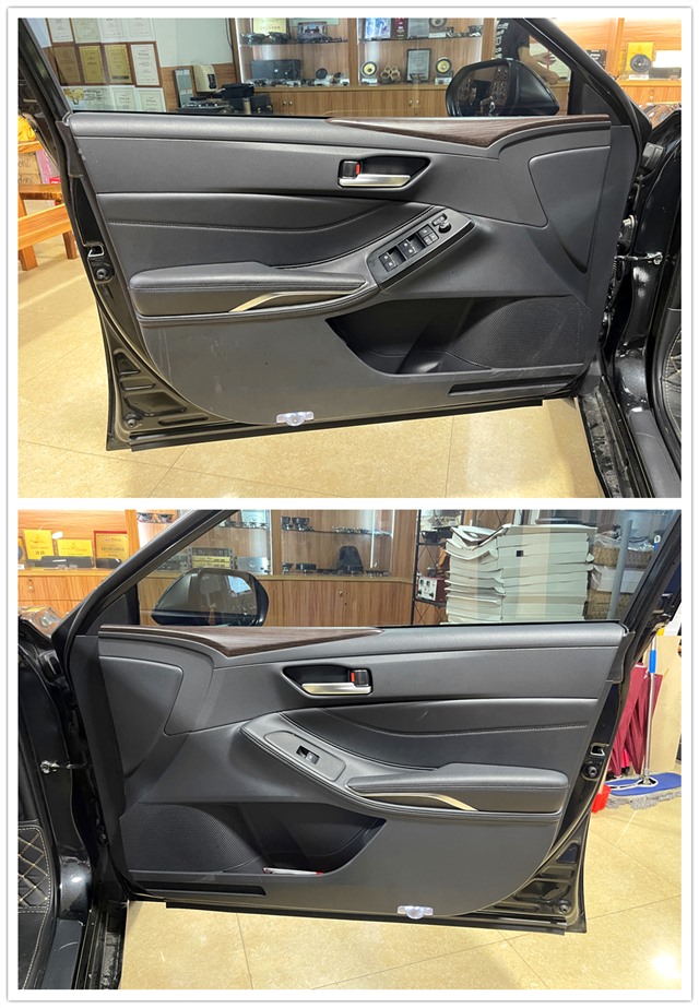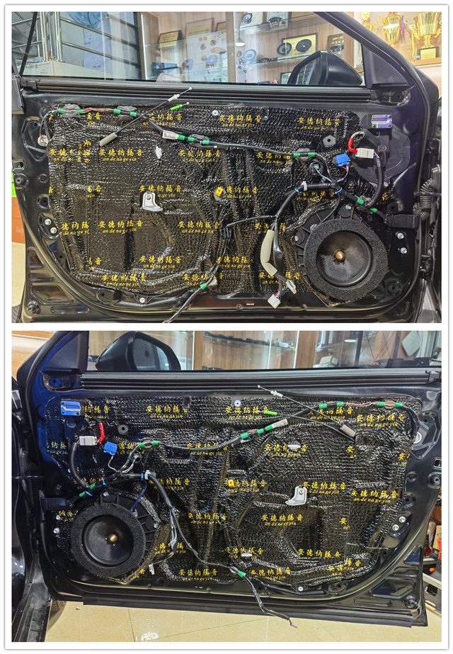 前后門板使用安德納進行雙層隔音處理,抑制振動,強化鈑金剛性,有效降低板件諧振頻率。隔音后原位無損安裝勁浪165A-GL中低音喇叭